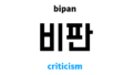 | 비판적 | noun | 批判的批判的 | 비ː판적 |