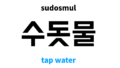 | 수도꼭지 | noun | 水道 꼭지水道 꼭지 | 수도꼭찌 |