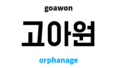 | 고아 | noun | 孤兒孤兒 | 고아 |