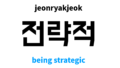 strategy in Korean is 전략. For examples, you can use like [뛰어난 전략, 전략을 세우다]. In this post you will learn how to pronounce and use 전략 along with examples.
