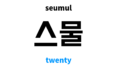 Twenty in Korean is 스무. For examples, you can use like [스무 개, 스무 명]. In this post you will learn how to pronounce and use 스무 along with examples.