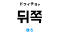 韓国語でうしろ【後ろ】 [뒤]の意味と発音を学ぼう スポンサーリンク ㄷ Twitter Facebook はてブ Pocket LINE コピー 2022.12.22 韓国語でうしろ【後ろ】は 뒤で、例えは [뒤로 물러서다, 내 뒤로 줄을 서주세요] のように使います。このポストでは発音・例文とともに韓国言でうしろ【後ろ】の意味と使い方をご説明します。 目次 基本情報뒤意味 基本情報 単語 品詞 漢字 発音 뒤 名詞 – 뒤ː 뒤意味 意味 解説 うしろ【後ろ】。こうほう【後方】 向かっている方向の反対側。