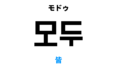 韓国語ですべての [모든]の意味と発音を学ぼう スポンサーリンク ㅁ Twitter Facebook はてブ Pocket LINE コピー 2022.12.22 韓国語ですべてのは 모든で、例えは [모든 것, 모든 국민] のように使います。このポストでは発音・例文とともに韓国言ですべてのの意味と使い方をご説明します。 目次 基本情報모든意味 基本情報 単語 品詞 漢字 発音 모든 冠形詞 – 모ː든 모든意味 意味 解説 すべての。あらゆる。ぜん【全】 欠落したり余ったりせず、全部であるさま。