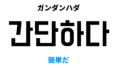 韓国語でかんたんに【簡単に】 [간단히]の意味と発音を学ぼう スポンサーリンク ㄱ Twitter Facebook はてブ Pocket LINE コピー 2022.12.22 韓国語でかんたんに【簡単に】は 간단히で、例えは [간단히 끝내다, 간단히 말하다] のように使います。このポストでは発音・例文とともに韓国言でかんたんに【簡単に】の意味と使い方をご説明します。 目次 基本情報간단히意味 基本情報 単語 品詞 漢字 発音 간단히 副詞 簡單 히 간단히 간단히意味 意味 解説 かんたんに【簡単に】 物事が長くならないように。または、複雑でないように。