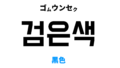 韓国語でくろ【黒】 [검정]の意味と発音を学ぼう スポンサーリンク ㄱ Twitter Facebook はてブ Pocket LINE コピー 2022.12.22 韓国語でくろ【黒】は 검정で、例えは [연한 검정, 짙은 검정] のように使います。このポストでは発音・例文とともに韓国言でくろ【黒】の意味と使い方をご説明します。 目次 基本情報검정意味 基本情報 単語 品詞 漢字 発音 검정 名詞 – 검정 검정意味 意味 解説 くろ【黒】 光がない時の夜空のようにとても暗くて濃い色。