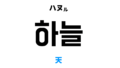 韓国語でそらいろ【空色】 [하늘색]の意味と発音を学ぼう スポンサーリンク ㅎ Twitter Facebook はてブ Pocket LINE コピー 2022.12.22 韓国語でそらいろ【空色】は 하늘색で、例えは [하늘색 계통, 하늘색 모자] のように使います。このポストでは発音・例文とともに韓国言でそらいろ【空色】の意味と使い方をご説明します。 目次 基本情報하늘색意味 基本情報 単語 品詞 漢字 発音 하늘색 名詞 하늘 色 하늘쌕 하늘색意味 意味 解説 そらいろ【空色】 晴れた空のような薄い水色。