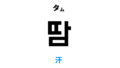 韓国語でち【地】 [땅]の意味と発音を学ぼう スポンサーリンク ㄷ Twitter Facebook はてブ Pocket LINE コピー 2022.12.22 韓国語でち【地】は 땅で、例えは [하늘과 땅, 낮은 땅] のように使います。このポストでは発音・例文とともに韓国言でち【地】の意味と使い方をご説明します。 目次 基本情報땅意味 基本情報 単語 品詞 漢字 発音 땅 名詞 – 땅 땅意味 意味 解説 ち【地】。とち【土地】。じめん【地面】。だいち【大地】 地球で水から成っている部分ではなく、土や石から成っている部分。