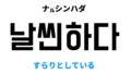 韓国語でてんき【天気】 [날씨]の意味と発音を学ぼう スポンサーリンク ㄴ Twitter Facebook はてブ Pocket LINE コピー 2022.12.22 韓国語でてんき【天気】は 날씨で、例えは [가을 날씨, 겨울 날씨] のように使います。このポストでは発音・例文とともに韓国言でてんき【天気】の意味と使い方をご説明します。 目次 基本情報날씨意味 基本情報 単語 品詞 漢字 発音 날씨 名詞 – 날씨 날씨意味 意味 解説 てんき【天気】。きこう【気候】。てんこう【天候】。そらもよう【空模様】 その日その日の気温や空気中の雨、雲、風、霧などが発生する状態。