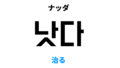 韓国語でひる【昼】 [낮]の意味と発音を学ぼう スポンサーリンク ㄴ Twitter Facebook はてブ Pocket LINE コピー 2022.12.22 韓国語でひる【昼】は 낮で、例えは [내일 낮, 낮과 밤] のように使います。このポストでは発音・例文とともに韓国言でひる【昼】の意味と使い方をご説明します。 目次 基本情報낮意味 基本情報 単語 品詞 漢字 発音 낮 名詞 – 낟 낮意味 意味 解説 ひる【昼】。ひるま・ちゅうかん【昼間】。にっちゅう【日中】 日の出から日の入りまでの間。