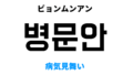 韓国語でびょうき【病気】 [병]の意味と発音を学ぼう スポンサーリンク ㅂ Twitter Facebook はてブ Pocket LINE コピー 2022.12.22 韓国語でびょうき【病気】は 병で、例えは [병이 나다, 병이 낫다] のように使います。このポストでは発音・例文とともに韓国言でびょうき【病気】の意味と使い方をご説明します。 目次 基本情報병意味 基本情報 単語 品詞 漢字 発音 병 名詞 病 병ː 병意味 意味 解説 びょうき【病気】。しっぺい【疾病】 生物体の体に異常が生じて、生物体が正常な活動をできず、苦痛を感じる現象。