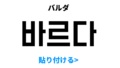 韓国語でまっすぐに [바로]の意味と発音を学ぼう スポンサーリンク ㅂ Twitter Facebook はてブ Pocket LINE コピー 2022.12.22 韓国語でまっすぐには 바로で、例えは [바로 그리다, 바로 긋다] のように使います。このポストでは発音・例文とともに韓国言でまっすぐにの意味と使い方をご説明します。 目次 基本情報바로意味 基本情報 単語 品詞 漢字 発音 바로 副詞 – 바로 바로意味 意味 解説 まっすぐに【真っ直ぐに】。いっちょくせんに【一直線に】 曲がったり歪んだりせずまっすぐに。
