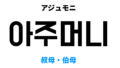韓国語でアジュンマ [아줌마]の意味と発音を学ぼう スポンサーリンク ㅇ Twitter Facebook はてブ Pocket LINE コピー 2022.12.22 韓国語でアジュンマは 아줌마で、例えは [가게 아줌마, 동네 아줌마] のように使います。このポストでは発音・例文とともに韓国言でアジュンマの意味と使い方をご説明します。 目次 基本情報아줌마意味 基本情報 単語 品詞 漢字 発音 아줌마 名詞 – 아줌마 아줌마意味 意味 解説 アジュンマ 他人同士で結婚した女性を指したり呼ぶ語。