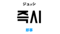 韓国語で即席 [즉석]の意味と発音を学ぼう スポンサーリンク ㅈ Twitter Facebook はてブ Pocket LINE コピー 2022.12.22 韓国語で即席は 즉석で、例えは [즉석의 이야기, 즉석에서 거절하다] のように使います。このポストでは発音・例文とともに韓国言で即席の意味と使い方をご説明します。 目次 基本情報즉석意味 基本情報 単語 品詞 漢字 発音 즉석 名詞 卽席 즉썩 즉석意味 意味 解説 そくせき【即席】。そくざ【即座】 何かが行われるその場。