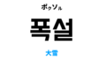 韓国語で大雨 [폭우]の意味と発音を学ぼう スポンサーリンク ㅍ Twitter Facebook はてブ Pocket LINE コピー 2022.12.22 韓国語で大雨は 폭우で、例えは [집중 폭우, 폭우 예보] のように使います。このポストでは発音・例文とともに韓国言で大雨の意味と使い方をご説明します。 目次 基本情報폭우意味 基本情報 単語 品詞 漢字 発音 폭우 名詞 暴雨 포구 폭우意味 意味 解説 おおあめ【大雨】。ごうう【豪雨】 突然、大量に降る雨。