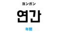韓国語で年 [연]の意味と発音を学ぼう スポンサーリンク ㅇ Twitter Facebook はてブ Pocket LINE コピー 2022.12.22 韓国語で年は 연で、例えは [연 강수량, 연 매출액] のように使います。このポストでは発音・例文とともに韓国言で年の意味と使い方をご説明します。 目次 基本情報연意味 基本情報 単語 品詞 漢字 発音 연 名詞 年 연 연意味 意味 解説 ねん【年】。ねんかん【年間】 一年間。