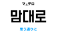 韓国語で思う存分 [맘껏]の意味と発音を学ぼう スポンサーリンク ㅁ Twitter Facebook はてブ Pocket LINE コピー 2022.12.22 韓国語で思う存分は 맘껏で、例えは [맘껏 놀다, 맘껏 느끼다] のように使います。このポストでは発音・例文とともに韓国言で思う存分の意味と使い方をご説明します。 目次 基本情報맘껏意味 基本情報 単語 品詞 漢字 発音 맘껏 副詞 – 맘ː껃 맘껏意味 意味 解説 おもうそんぶん【思う存分】。おもいきり【思いきり】 満足するまでいくらでも。