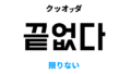 韓国語で果てしなく [끝없이]の意味と発音を学ぼう スポンサーリンク ㄱ Twitter Facebook はてブ Pocket LINE コピー 2022.12.22 韓国語で果てしなくは 끝없이で、例えは [끝없이 내려가다, 끝없이 되풀이하다] のように使います。このポストでは発音・例文とともに韓国言で果てしなくの意味と使い方をご説明します。 目次 基本情報끝없이意味 基本情報 単語 品詞 漢字 発音 끝없이 副詞 – 끄덥씨 끝없이意味 意味 解説 はてしなく【果てしなく】 終わりがないか制限なく。