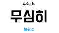 韓国語で無言 [무언]の意味と発音を学ぼう スポンサーリンク ㅁ Twitter Facebook はてブ Pocket LINE コピー 2022.12.22 韓国語で無言は 무언で、例えは [무언의 눈짓, 무언의 메시지] のように使います。このポストでは発音・例文とともに韓国言で無言の意味と使い方をご説明します。 目次 基本情報무언意味 基本情報 単語 品詞 漢字 発音 무언 名詞 無言 무언 무언意味 意味 解説 むごん【無言】 ものを言わないこと。