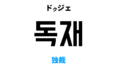 韓国語で独裁者 [독재자]の意味と発音を学ぼう スポンサーリンク ㄷ Twitter Facebook はてブ Pocket LINE コピー 2022.12.22 韓国語で独裁者は 독재자で、例えは [무서운 독재자, 독재자가 되다] のように使います。このポストでは発音・例文とともに韓国言で独裁者の意味と使い方をご説明します。 目次 基本情報독재자意味 基本情報 単語 品詞 漢字 発音 독재자 名詞 獨裁者 독째자 독재자意味 意味 解説 どくさいしゃ【独裁者】 ある集団で全ての権力を握り、自分勝手に物事を決める人。