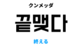 韓国語で結末 [끝장]の意味と発音を学ぼう スポンサーリンク ㄱ Twitter Facebook はてブ Pocket LINE コピー 2022.12.22 韓国語で結末は 끝장で、例えは [끝장을 내다, 끝장까지 가다] のように使います。このポストでは発音・例文とともに韓国言で結末の意味と使い方をご説明します。 目次 基本情報끝장意味 基本情報 単語 品詞 漢字 発音 끝장 名詞 – 끋짱 끝장意味 意味 解説 けつまつ【結末】。おわり【終わり】。しまい【仕舞い】 これ以上、考えられない最後の段階や状況。