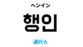 韓国語で行動 [행세]の意味と発音を学ぼう スポンサーリンク ㅎ Twitter Facebook はてブ Pocket LINE コピー 2022.12.22 韓国語で行動は 행세で、例えは [행세가 형편없다, 행세를 하다] のように使います。このポストでは発音・例文とともに韓国言で行動の意味と使い方をご説明します。 目次 基本情報행세意味 基本情報 単語 品詞 漢字 発音 행세 名詞 行世 행세 행세意味 意味 解説 行動 人間としての道理を実践すること。また、そのような態度。