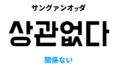 韓国語で関係なく [상관없이]の意味と発音を学ぼう スポンサーリンク ㅅ Twitter Facebook はてブ Pocket LINE コピー 2022.12.22 韓国語で関係なくは 상관없이で、例えは [가격에 상관없이, 계절에 상관없이] のように使います。このポストでは発音・例文とともに韓国言で関係なくの意味と使い方をご説明します。 目次 基本情報상관없이意味 基本情報 単語 品詞 漢字 発音 상관없이 副詞 相關 없이 상과넙씨 상관없이意味 意味 解説 かんけいなく【関係なく】 互いに関係なく。