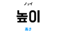 韓国語でたかい【高い】は 높다で、例えは [높은 빌딩, 높은 파도] のように使います。このポストでは発音・例文とともに韓国言でたかい【高い】の意味と使い方をご説明します。